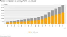 - ↑ "Foreign citizens by country of citizenship, sex and year". Statistics Sweden. Retrieved 21 November 2017.