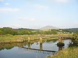 The Artro enters the sea at a sizeable tidal estuary between Llandanwg and Mochras/Shell Island.[1] The current estuary was formed following a diversion of the Artro by the Earl of Winchilsea in 1819 to improve access to the wharf at Pensarn which was the shipment point for slate from Llanfair and Llanbedr. Prior to this the Artro entered the sea to the south of Mochras.