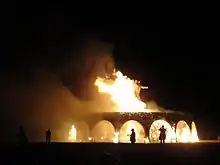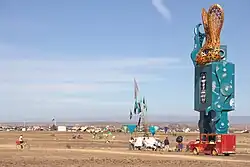 AfrikaBurn is an official Burning Man regional[1] event, held at Quaggafontein (lit. "fountain of Quagga") in the Tankwa Karoo, in the Western Cape Province of South Africa. It is centered on the building of a temporary creative community in a semi-desert environment, involving ephemeral artworks, some of which are burnt towards the end of the event. Many attendees wear elaborate costumes and some create decorated "mutant vehicles".[2] These mobile art cars are officially called Desert Mutant Vehicles.