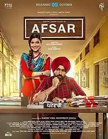 Afsar is a 2018 Indian Punjabi film directed by Gulshan Singh, starring Tarsem Jassar, Nimrat Khaira, Gurpreet Ghuggi and Karamjit Anmol. The film is based on the concept that Kanungo is a higher post than Patwari, but higher respect is given to the Patwari rather than Kanungo. The film is produced by Amiek Virk & Manpreet Johal. it is the debut film for director Gulshan Singh and the debut in a lead role for Nimrat Khaira.[1][2][3]