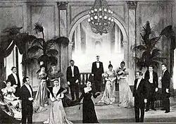 Coward cast Mary Ellis in the leading role of Mrs Erlynne, unwisely accepting without audition her assurance that, in her late 50s, she was singing as well as ever.[2] Hackforth soon realised that she could not adequately sing Coward's difficult music for the role. In Coward's absence, Hackforth reluctantly cut the most challenging music for the twelve-week tour opening in Liverpool on 1 March 1954, but he was still dismayed by Ellis's delivery of the music. Coward returned to England at the end of March and saw the production at Bristol on 1 April. He was distressed by what he saw and heard: "the absence of style in the direction... a great deal of the performance was inaudible.... Vanessa [Lee] sang divinely but acted poorly. Mary Ellis acted well but sang so badly I could hardly bear it. The orchestra was appalling, the orchestrations beneath contempt, and poor Norman [Hackforth] conducted like a stick of wet asparagus.".[6]