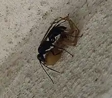 - ↑ Carvalho-Filhoa, Fernando da Silva; Aukob, Tiago Henrique; Waichert, Cecília (2015). "Observations on the nesting behaviour of the spider wasp Eragenia congrua (Hymenoptera: Pompilidae), with the first record of the host". Journal of Natural History. 49 (33–34): 2035–2044. doi:10.1080/00222933.2015.1006701. S2CID 85426104.