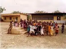 - A school with twelve classrooms,[4] six of which were built by the village with locally raised funds, with partial connection to electricity;