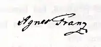 - ↑ Gedichte von Agnes Franz. First Part / Second Part Hirschberg: C. W. J. Kahn, o. J. [1826]. 244 / 248 pages. ([Part 1:] Vermischte Gedichte / Erzählende Gedichte / Religiöse Gedichte / Biblische Gemälde - [Part 2:] Vermischte Gedichte / Erzählende Gedichte / Sonnenhold. Romantisches Gedicht / Charaden)