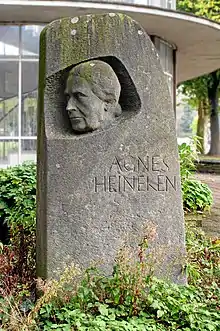 - The Agnes Heineken Memorial commissioned by the senate and sculpted by Kurt Lettow (1908-1992), takes the form of a stone stele with a high-relief head-portrait. It has stood since 1957 by the "Berufsbildungszentrum" / BBZ ("Professional Training Center") between Blocks A and B in the centre of Bremen.[12]