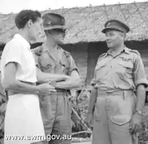 The Japanese invading forces landed in Sandakan on January 19, 1942. For the first few months of Japanese occupation of British Borneo, the Keiths were allowed to stay in their own home. On 12 May Agnes and George were imprisoned on Berhala Island (Pulau Berhala) near Sandakan, in a building that had once been the Government Quarantine Station, along with other Western women and children. Harry was imprisoned nearby.[13] They spent eight months there before Agnes and George were sent to Kuching in Sarawak. They left by a small steamer on January 12, 1943, and arrived eight days later.[14] They were imprisoned in Batu Lintang camp near Kuching, unusual in that it accommodated both prisoners of war and civilian internees in between eight and ten separate compounds.[15] Harry later arrived at the camp.[16] The camp was finally liberated on 11 September 1945 by the 9th Australian Army Division under the command of Brigadier T. C. Eastick.[17] All three members of the Keith family had survived their internment.