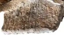 The inscription in Brahmi script on the base of the statue is in very bad condition, but has been partly deciphered. Some parallels with the contemporary Mudgarpani statue, probably manufactured and dedicated by the same person, also helped interpretation: