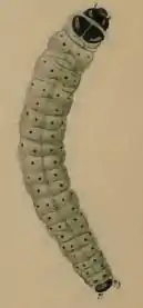 The larvae feed on Arctium, Carduus defloratus, Centaurea jacea, Centaurea nigra, Cirsium arvense, Cirsium helenioides and Cirsium vulgare. They mine the leaves of their host plant. The mine has the form of a conspicuous, elongated, large, whitish upper-surface blotch, extending on both sides of the mid-rib. Most frass is ejected out of the mine. Pupation takes place outside of the mine.[3] Larvae can be found from May to early July. They are initially yellow-green with a black head. Later instars are dull brownish green or greyish green with a black head. The species overwinters as an adult.