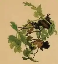 A leaf of Peucedanum oreoselinum twisted by larva