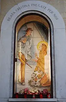 Camozzi married a stonecutter - despite the protests of her parents - but was widowed not long after their marriage.[4] She soon became the mistress to a Milanese soldier and bore his child - her sole child - though this child died as an infant.[1][5] She became widowed once more after her second marriage when a jealous rival killed her farmer husband from Mantua competing for her affections.[4] This prompted Camozzi to realize that her life had spun out of control and caused her to experience a religious conversion circa 1450;[3] she henceforth decided to enter the religious life and became a member of the Order of Saint Augustine where she assumed the religious name of "Cristina".[1] She moved to Verona around this time.