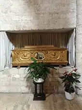 Camozzi travelled on a pilgrimage to both Assisi and Rome as well as international to Jerusalem in 1457 during the Lenten season but on the return trip died in Spoleto in 1458 due to fever. She received a vision of the Blessed Mother before her death.[3] Her remains were interred at the order's church of Saint Nicholas but re-interred at the Chiesa di San Gregorio Magno in 1921 until 2015 when the remains were moved back to her hometown.[2][5]