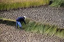 The country's total geographical size is 38,394 km, of which cultivable land accounts for just 2.93%.[11] Terraced rice cultivation is commonly referred to as wetland farming, which constitutes 27.86% of the country's cultivable land.[12]