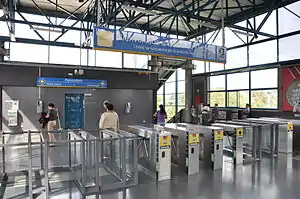 Aguacatala is the 16th station on line A of the Medellín Metro going south. It is the last stop on the metro that is within the city limits of Medellín, and it is located in the industrial area of the city. The station was opened on 30 September 1996 as part of the extension of the line from Poblado to Itagüí.[1]