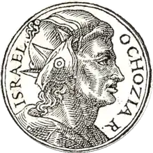 Ahaziah (Hebrew: אֲחַזְיָה, romanized: ʾĂḥazyā, "Yah has grasped"; also Greek: Ὀχοζίας, Ochozias in the Septuagint and the Douai-Rheims translation) was the eighth king of the northern Kingdom of Israel and the son of Ahab and Jezebel. Like his father, he reigned from Samaria. William F. Albright has dated his reign to 850–849 BC, while E. R. Thiele offers the dates 853–852 BC.[1]