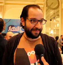 Ahmed Sayed Amin[1] (Arabic: أحمد سيد أمين; born in 1980) is an Egyptian comedian, actor, and writer. He graduated from the Faculty of Fine Arts, Helwan University in 2002. Amin came to prominence from his online video "30 sanya" (30 seconds) that went viral among Egyptians on Facebook. His second, and more important step, was the Al Plateau TV show. 2019, came up with his successful TV show Amin and partners. In November 2019, it was officially declared by Netflix[2][3][4][5][6] that Amin is to star their upcoming first-ever Egyptian original Paranormal,[7][3][8] in the role of Refaat Ismael.[9][10][11][12][13]