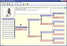 Ahnenblatt is a genealogy software application for Microsoft Windows developed by German programmer Dirk Böttcher. It features data entry, plausibility check and creation of charts and reports. The software imports and exports GEDCOM files and exports Web pages.[2][3][4][5]