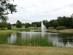 The park is 105,000 m2 (1,130,000 sq ft) large.[1] There are paths for pedestrians and cyclists, a playground, a bowling green, a community garden, a skate park and an indoor skating rink. One of the features of the park is its hill, and pond. There is also a welcome centre near the park's entrance.[1]