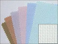 Aida cloth (sometimes called Java canvas[1]) is an open, even-weave fabric traditionally used for cross-stitch embroidery. This cotton fabric has a natural mesh that facilitates cross-stitching and enough natural stiffness that the crafter does not need to use an embroidery hoop.