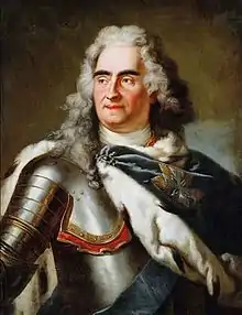 Augustus the Strong wearing the original Order of the White Eagle with an embroidered Grand Cross. Portrait by Louis de Silvestre from around 1718