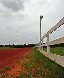 Aiken Mile Track, located in Aiken, South Carolina, was built around 1936 during the heart of the Great Depression.[2][3] Horses and horse racing is known as the “sport of kings.” Within that context it is significant that such a track should be built during a time of nationwide double-digit unemployment, and noteworthy in the sense that it contributed to Aiken's success as an equestrian center and “Winter Colony” during those difficult days. The landmark consists of outbuildings as well, including numerous barns. It is an accessible landmark, no more than a few miles from downtown Aiken. Aiken Mile Track was listed in the National Register of Historic Places on May 9, 1985.[1]