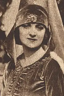 Broadway appearances by Dalmores included roles in Dancing Around (1914-1915),[7] Josephine (1918),[8] and The Master (1918). Other stage credits included Taking Chances (1915),[2] The Unchastened Woman (1916),[9][10] Peace and Quiet (1916),[11][12] Anna Cora Mowatt's short play Fashion (1917),[13] and Fifth Avenue (1917). She was in the cast of The French Episode (1917), directed by Ben Ali Haggin, part of a pageant presented on Long Island, to benefit the American Red Cross during World War I.[14][15][16] In 1918 she was the leading lady of the Robins Stock company in Toronto,[17] where she starred in Broken Threads.[18] Her film roles were in silent pictures from 1917, Scandal, starring Constance Talmadge,[19] The On-the-Square Girl, written by Ouida Bergère,[20] and Madame Fifi.[21]