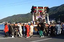 Aki Matsuri (fall festival) is a major event for the local people. People gather in many places to watch children perform the Five Deer Dance, or the Karashishi dance. Adults also carry mikoshi and Ushi Oni (a large cow demon float) around town.