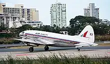 Air Haiti SA was formed in December 1969 following the award of a five-year foreign air carrier permit by the US Civil Aeronautics Administration[1] All-cargo scheduled services began in October 1970 between Port-au-Prince Airport, Isla Verde Airport in San Juan, Puerto Rico and Miami International Airport. Initially Curtiss C-46 Commando freighters were used but these were supplemented by leased Douglas DC-6A cargo aircraft.[2] For a few years, Air Haïti's C-46 Commandos were a common sight at airports such as San Juan, Puerto Rico and Miami International. The airline operated from 1969.[3] Air Haïti was re-launched by Air Lébér, and it owns 89% of the airline. The government of Haiti owns 11%.