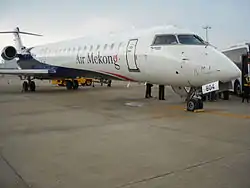 Mekong Aviation Joint Stock Company[1] (Vietnamese: Công ty Cổ phần Hàng không Mê Kông[2]), doing business as Air Mekong, was an airline from Vietnam which operated scheduled passenger flights from its base at Phu Quoc Airport and secondary hubs at Noi Bai International Airport and Tan Son Nhat International Airport. Its headquarters were located in Phú Quốc, Kiên Giang Province. It was established in 2009 and flight operations were launched on 9 October 2010. This is the third privately owned airline of Vietnam, after Indochina Airlines (defunct as of 2009), and VietJet Air. Air Mekong leased four Bombardier CRJ 900 aircraft from SkyWest Airlines, each equipped with 90 seats in both business and economy classes.[3][4][5][6] In 2011, Air Mekong operated 10,750 flights and carried about 710 thousand passengers.[7]