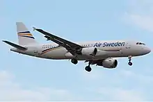 Air Sweden was an airline based in Stockholm, Sweden, which operated charter flights out of Stockholm-Arlanda Airport, and worldwide aircraft lease services. The company was founded as the successor of Nordic Airways and received its airline license in December 2009. The airline suspended all operation in September 2011.[1]