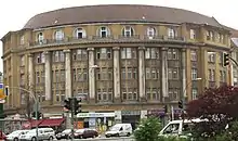 Platz der Luftbrücke is a landmarked[1] square and transport node in Berlin, Germany, on the border between the localities of Tempelhof and Kreuzberg. The entrance to the former Tempelhof International Airport is on the square. The buildings around the square are now mostly government agencies, in particular police headquarters. The name of the square commemorates the Berlin airlift of 1948/49 (German: Luftbrücke, 'air bridge') in which Tempelhof was the main airfield used; the Berlin Airlift Monument is in the square.