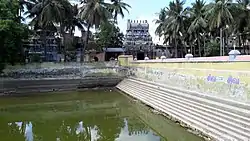 As per another legend, Nandi(the divine bull of lord Shiva), the founder of Tirukailaya monastic dynasty, was born at this place to sage Salandha. The sage left the child in the temple. It is believed that Shiva performed ablution with Ambika's breast milk on the child, foam from Nandhi's mouth, nectar from Surya Pushakarni, Amrita pushkarani and Saiva theertham (the three water bodies). Since the child received from five different water sources, the presiding deity came to be known as Aiyarappar.[3][4] The temple is counted as one of the temples built on the northern banks of River Kaveri.[5]