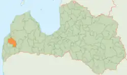 Aizpute Municipality (Latvian: Aizputes novads) is a former municipality in Courland, Latvia. The municipality was formed in 2009 by merging Aizpute town, Aizpute parish, Cīrava parish, Kalvene parish, Kazdanga parish and Laža parish the administrative centre being Aizpute. Aizpute Municipality ceased to exist on 1 July 2021, when it was merged into the newly-formed South Kurzeme Municipality.[3] The population in 2020 was 8,057.[4]
