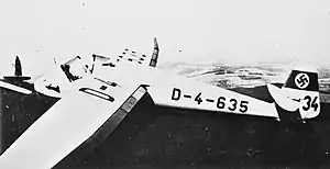 The Akaflieg Berlin B6 was a glider built in Germany in the late 1930s. It featured a high-wing, cantilevered mid-wing sailplane configuration with Junkers-flaps, retractable landing gear, all moving tail, dive air brakes, wood and steel body.[1]
