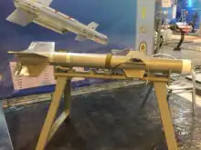 Akhgar missile (Persian: موشک اخگر) is an Iranian drone-launched air-to-ground missile operated by the Islamic Republic of Iran Air Force.[1] This Unmanned aerial vehicle weapon, which is among the newest missiles of Iranian drones, has a range of 30 km,[2] its weight is twenty seven kg and its maximum speed is 600 kilometers per hour.[3][4]