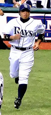 Akinori Iwamura (岩村 明憲, Iwamura Akinori, born February 9, 1979) is a former Japanese baseball infielder, who currently is a manager for the Fukushima Red Hopes in Japan's Baseball Challenge League. He made his Major League debut with the Tampa Bay Devil Rays in 2007.