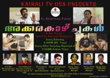 Akkarakkaazhchakal (Malayalam: അക്കരക്കാഴ്ച്ചകൾ) is a Malayalam language Indian sitcom that aired on Kairali TV from 2008 to 2010. The series consisted of fifty episodes which chronicled the lives of a middle-class Malayali family settled in the United States .[1] The show was created by Abi Varghese and Ajayan Venugopalan and starred relative newcomers as the leads.