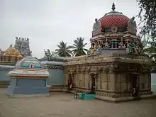 The "moolavar" or prime deity of the Akshayapureeswarar Temple is Shiva. All deities, particularly those placed in the niches of the outer wall (Koshta Moorthigal) like Dakshinamurthy. There are shrines for Lord Vinayaka, Lord Muruga with Valli and Deivanai, Chandikeswara, Saneeswara with consorts, Sun, Bhairava, Nandhi, Lord Dakshinamurthy, Brahmma, Lingodhbava, Mother Durga, Mother Gajalakshmi, Nagar and Lord Nataraja.