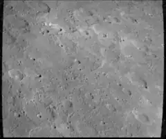 Mariner 10 image 149, from the first flyby on 25 March 1974, showing Botticelli in upper left and Al-Akhtal in upper right