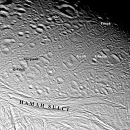 ![]() Al-Fakik (center left) as seen by the Cassini spacecraft on February 17, 2005 | |