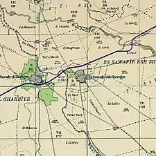 In 1838 the three Sawafir villages were noted located in the Gaza district. The western village (=Al-Sawafir al-Gharbiyya) was noted as "in ruins or deserted", while the two others were noted as being Muslim.[10][11]