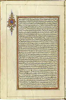 Sunni scholars proffer various theories about the verse of tabligh. Possibly because the verse is placed in the context of a critical discussion of the People of the Book (adherents of earlier monotheistic faiths, ahl al-kitab), some Sunni authors conclude that Muhammad was hesitant to convey this criticism.[1][16] Such is the view of al-Tabari (d. 923), a prominent Sunni exegete.[17] Alternatively, the Sunni exegete al-Zamakhshari (d. 1144) suggests that the verse equates concealing any part of the divine revelations with concealing all of it and includes a tradition in which Muhammad is threatened with divine punishment in that case.[18] A similar view is voiced by al-Baydawi (d. 1319), another Sunni exegete.[16] Muhammad's wife Aisha may have considered this verse as evidence of his faithfulness in transmitting the divine revelations.[18][19]