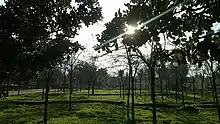 Facilities for football, basketball, volleyball, and tennis are available in the sports area. Also in the area is a camping area and stone bleachers that can hold 150 spectators.[1] They were built by Engineering Universe for Building and Contracting.