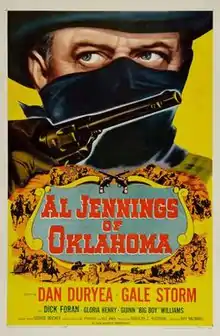 Al Jennings of Oklahoma is a 1951 American Western film directed by Ray Nazarro and starring Dan Duryea and Gale Storm. It is based on the story of Al Jennings, a former train robber turned attorney.[1][2][3]