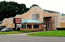 Likely 1940s by Bill Farner and Charles Mooney. Original hotel-style porters and room-service long gone.[17] Property deteriorating for many years and renting rooms hourly ($10/2hrs) at one point, remained "Alamo Plaza Motor Hotel" at least until 2006. Pool gone. Now low-cost housing. |
