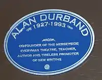 To mark this era, Willy Russell unveiled a plaque in memory of Alan Durband at the theatre in 1998 in the company of actor Pete Postlethwaite who acknowledged a great personal debt to his time spent on the stage at The Everyman.