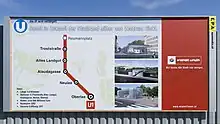 South of the Alaudagasse station, the U1 towards Oberlaa, which until this point ran along the Favoritenstraße, branches off and now runs parallel to the Donauländebahn to the Therme Wien. Here, a double-track turning system was built, which is designed in preparation for a line bifurcation. Thus, the possibility of an extension of the U1 to Rothneusiedl, as had been originally planned, remains.