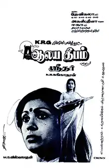 Alaya Deepam (transl.The temple lamp) is a 1984 Indian Tamil-language drama film directed by C. V. Sridhar and produced by K. R. Gangadharan.[1][2] The film stars Sujatha, Rajesh, Suresh and Ilavarasi. It was released on 6 July 1984.[3] The film was remade in Telugu under the same title in 1985 with Sujatha, Suresh, Ilavarasi and Y. G. Mahendran reprising their roles.