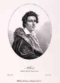 Albert débuted aged 14 at the Théâtre de la Gaîté, before being taken on by the Opéra de Paris in 1808, having been recommended to them by Jean-François Coulon and Auguste Vestris. Ejected by the ballet master Pierre Gardel, Albert divided his time between Paris and London, where he showed all the measure of his talent. Ousted from the Opéra in 1831 to the benefit of Jean Coralli and Filippo Taglioni, he worked in London, Naples and Marseille. From 1838 to 1840 Albert was ballet master to the Brussels Théâtre de la Monnaie, where he made the talents of Arthur Saint-Léon known to the public. On his return to Paris in 1841 he composed the divertissements for the opera La Favorite by Donizetti and for other pieces by that composer. He was also the author of a dance manual, L'art de la danse à la ville et à la cour (Paris, 1834). In 1811 Albert married the soprano Augustine Himm, after which she performed as Augustine Albert.[1]