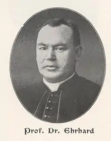 Born in Herbitzheim (Alsace), Ehrhard studied theology at Würzburg and Münster, being ordained as a priest in 1885, then received his doctorate of theology in 1888. From 1889 he served as a professor of dogmatics at the Roman Catholic seminary in Strasbourg. From 1892 to 1898 he was a professor of church history at the University of Würzburg, and afterwards held professorships in Vienna (from 1898), Freiburg (from 1902) and Strasbourg (from 1903), where in 1911/12 he served as university rector. From 1920 to 1927 he was a professor of church history at the University of Bonn.[1][2]