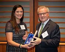 Amelia Baker Lauderdale presents Albert Galaburda with the Einstein Award at Harvard Medical School.